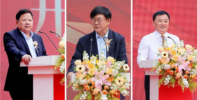 四川省口腔醫學會副會長兼秘書長郭錫久教授(左),四川大學華西口腔醫院田衛東教授(中),知名眼科專家、新橋口腔顧客代表姚曉明教授(右)致辭
